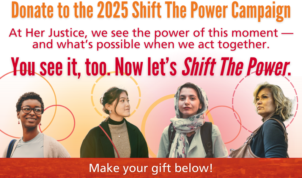 Her Justice stands with women living in poverty in New York City by recruiting and mentoring volunteer lawyers to provide free legal help to address individual and systemic legal barriers.